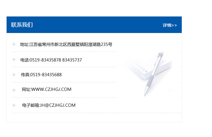 地址:常州市新北區友邦商務大廈1幢16、17層  電話:0519-85101652  傳真:0519-85112595  郵編:213022  網址:www_cz-jiayue_cn.shgukew.com  郵箱:xiajifengaa@163.com